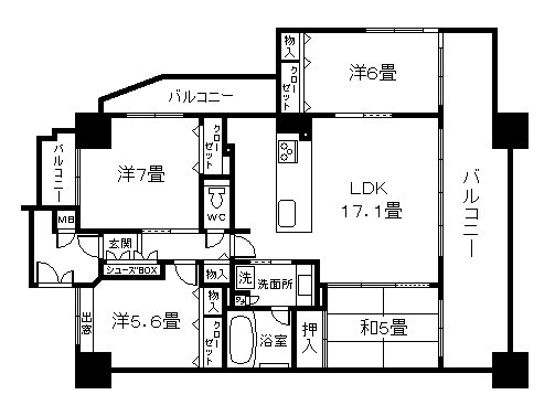 東南角部屋の4LDK