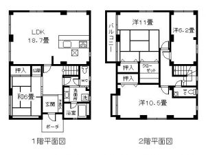 4LDK(1階 和6/LDK18.7 ・2階 洋11/洋10.5/洋6.2 )