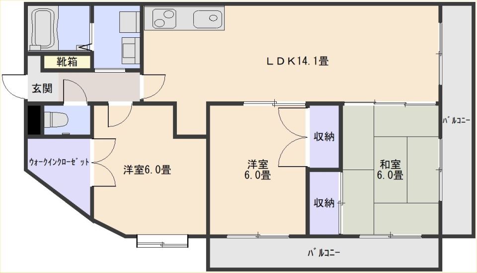 まず魅力的なポイントは近隣の3LDKにはないお部屋の広さ!
