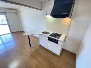 カウンターキッチンは2口コンロ、グリルが付いてい魅力的😉