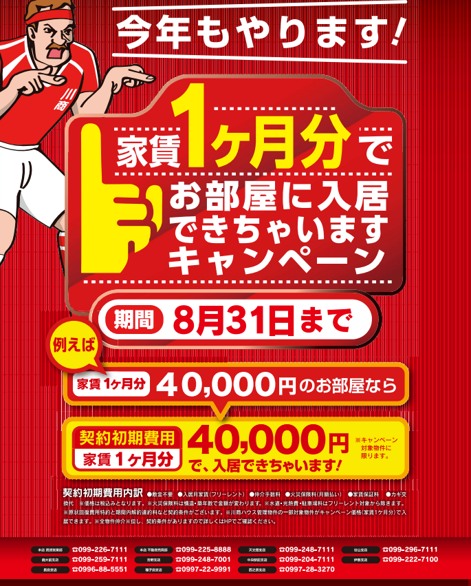 また、8月末までの「家賃1ヵ月分で入居できちゃいますキャンペーン」の対象物件(´▽`ʃ♡ƪ)
