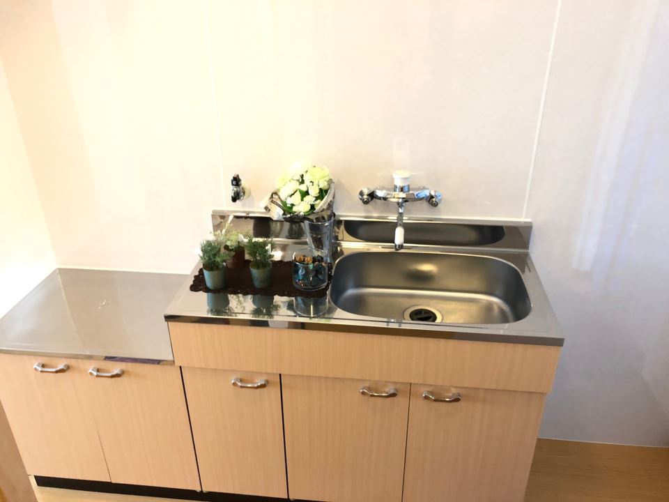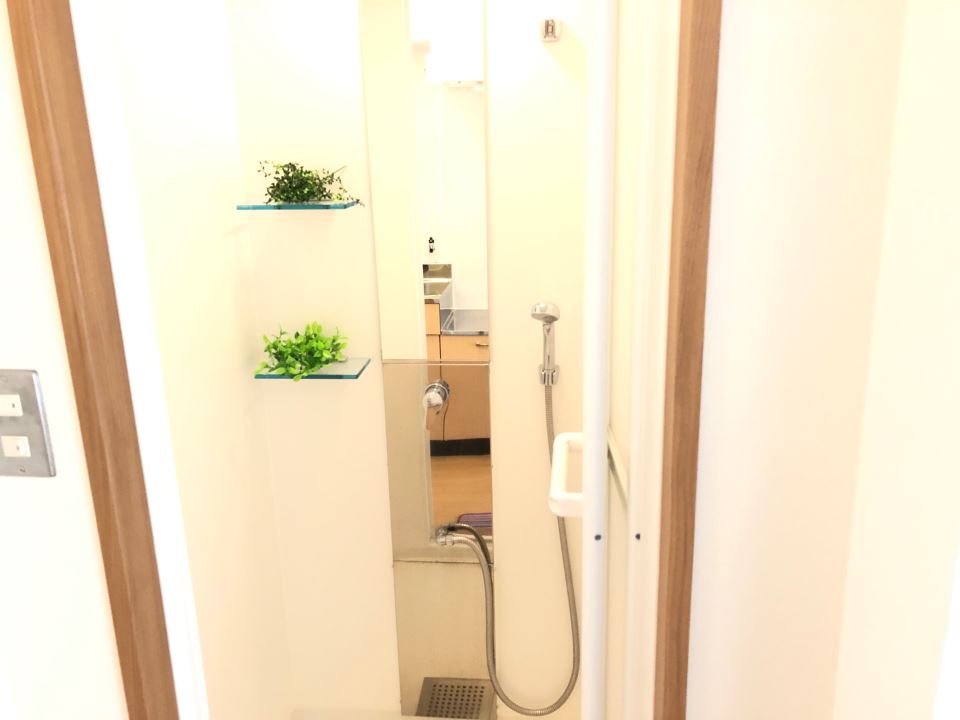 ユニットバスを取り壊しシャワールームを設けました。フルリノベーションのタイミングで流し台も新しく取り替えております。