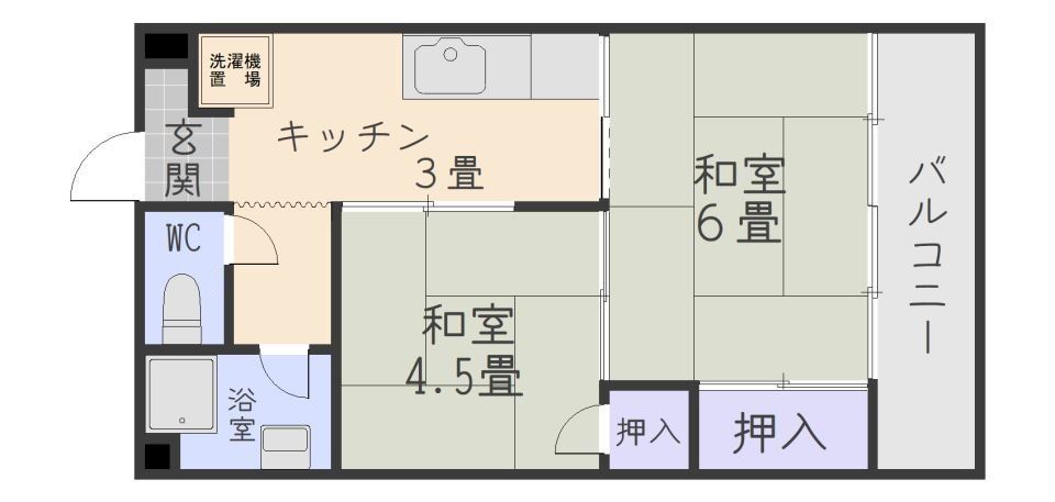 | 間取り | 2K | 築年数 | 築45年 |