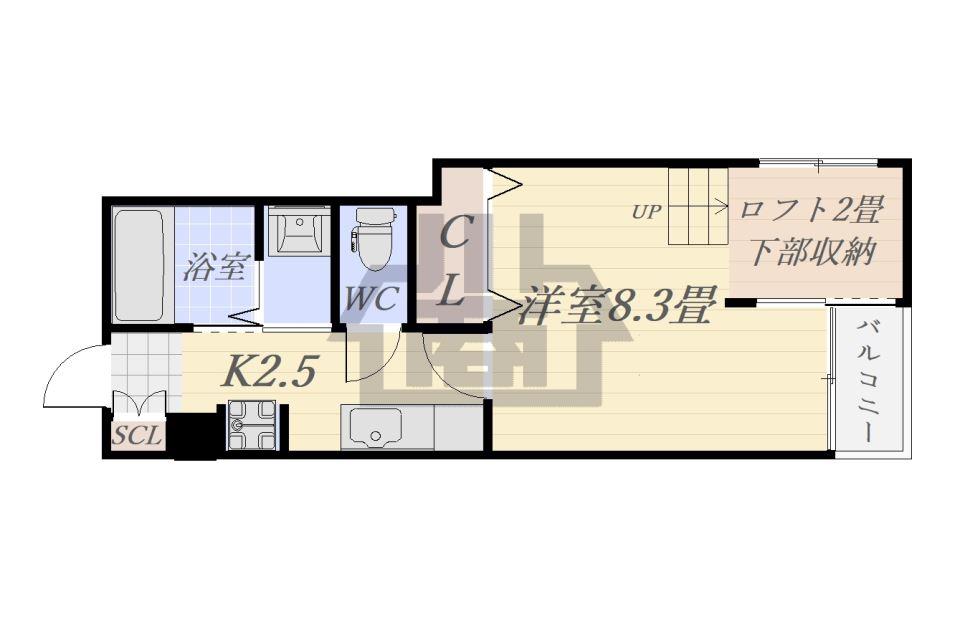 | 間取 | 洋8.3/ロフト2/K2.5/家電3点パック相談 | ||